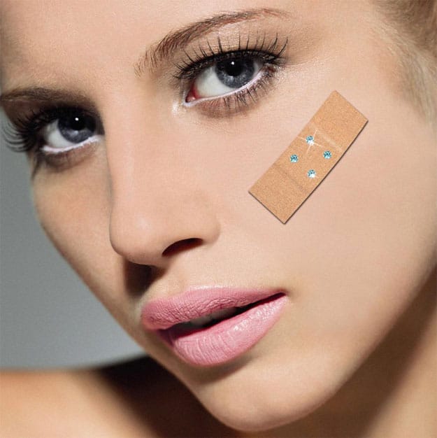 Who was it that made it popular to wear a band-aid on our face? I think it was a rapper. For those of you who like that style, now you can pimp out that look even more with some bling bling on your band-aids.