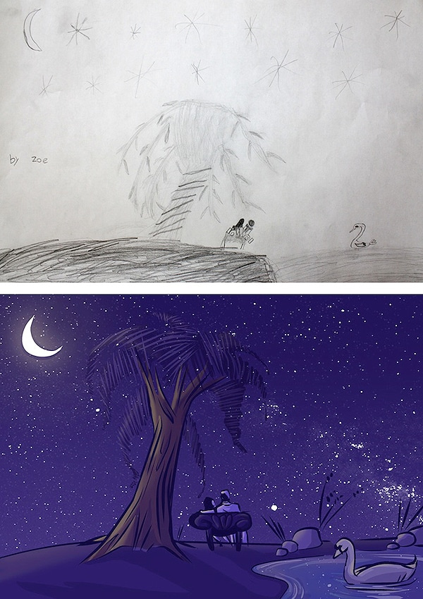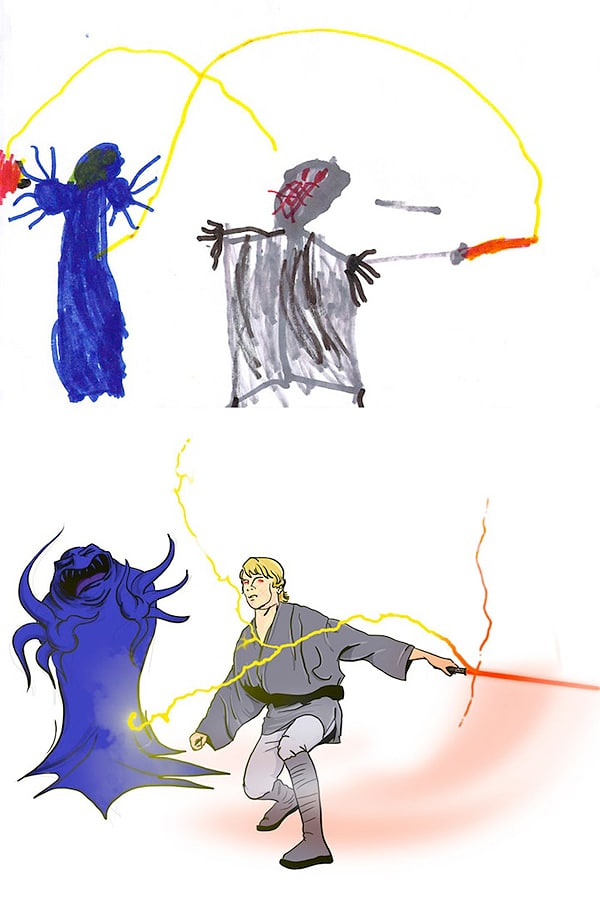 If you remember doing that too, you probably also remember that what was happening in your imagination didn’t always look like what came out on the paper. As artist Garrett Miller writes, “Kids have the ability to come up with some pretty amazing things, but not always to draw exactly what they were imagining. I’m here to help make those drawing come a little bit closer to reality.”