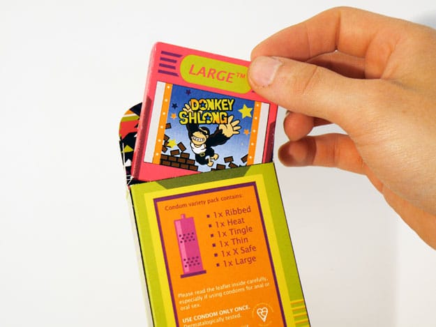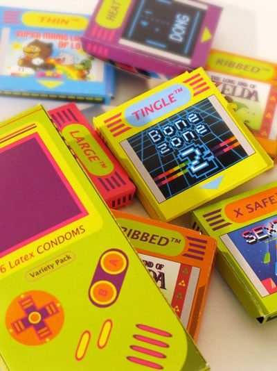 This 8-bit and retro gaming packaging is so witty and creative. Each condom represents a different classic Game Boy video game. These just confirm that geeks have more fun!