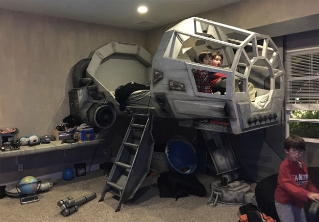 Whom among us who enjoyed Star Wars doesn’t think this is cool? Custom designed and carefully detailed, the dad behind this amazing bed is helping create not only a place of awesomeness for his child, but an incredible number of memories. For years to come, this kid will be able to say, “Oh yeah? Well, my dad created a Millennium Falcon bed from scratch for me…” – It is OK to be a little jealous.