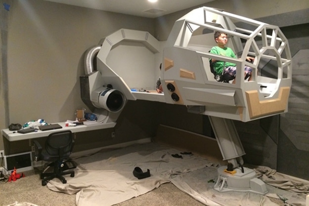 With the upcoming release of the 7th Star Wars Movie, The Force Awakens, parents and kids everywhere are engaging this franchise with renewed excitement and interest, bringing together the generations like never before. When both dad and son become excited about something, truly remarkable things can result. An amazing example of this is a father who recently constructed a Millennium Falcon bed for his son.