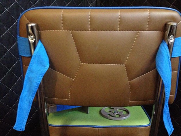 If you look closely, you can see what these chairs looked like before the transformation. I think any TMNT fan or ’80s fan would agree that these chairs look a lot better the way they are now than how they looked before. The guy who is responsible for this chair transformation is Brad Moore. He reupholstered each one for an exhibition in August so unfortunately they are one-offs. He just gave them away through a contest on his Facebook page.