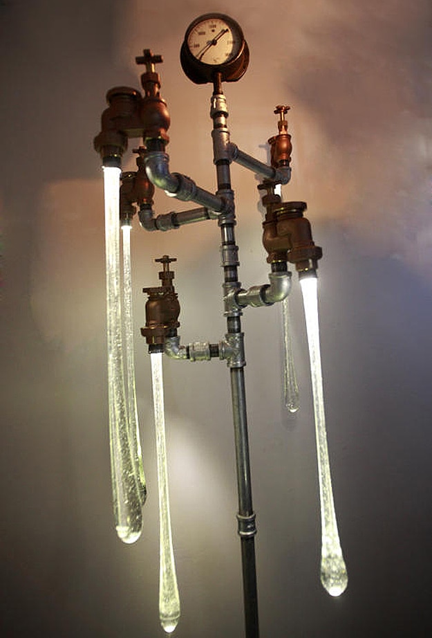 Each glass drop is hand sculpted. There are also LED lights incorporated into each installation. Each light is unique and stunning. According to Liquid Light, 5% of all Liquid Light purchases go towards the education and action on global water justice issues. I don’t know if Tanya intended these to look steampunky or not, but they sure do. I love how they look, and I love what the represent even more. I wouldn’t mind having a few of these for my office. They look peaceful, calm, beautiful and funky to me.