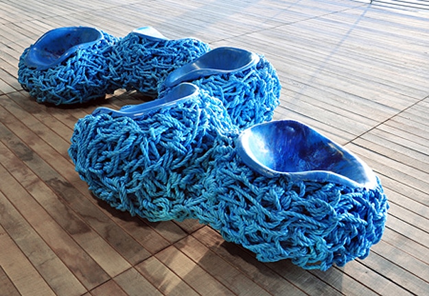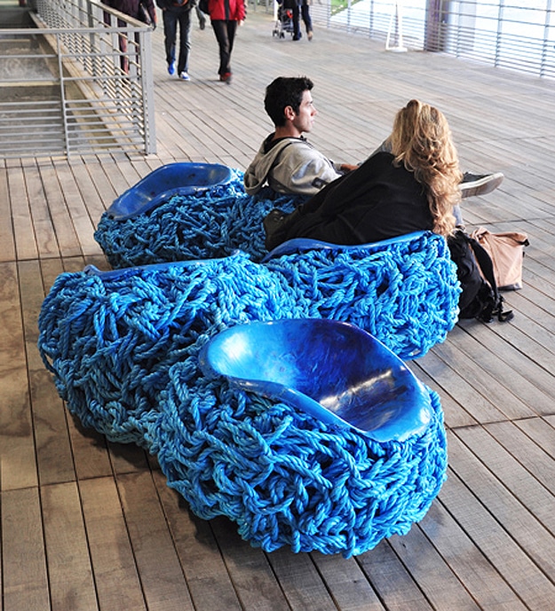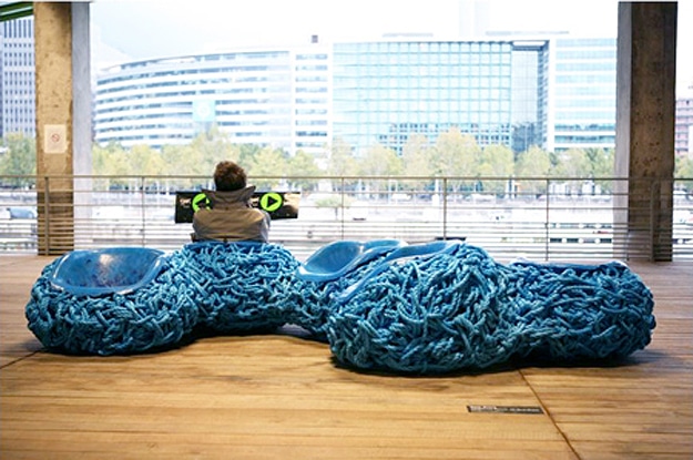 This innovative sculptured chair, created by Tom Price, was recently featured at the Museum of Art and Design in New York City. He recently wove five of these chairs together to create a blue rope bench, which now sits in the Paris Center of Fashion and Design.
