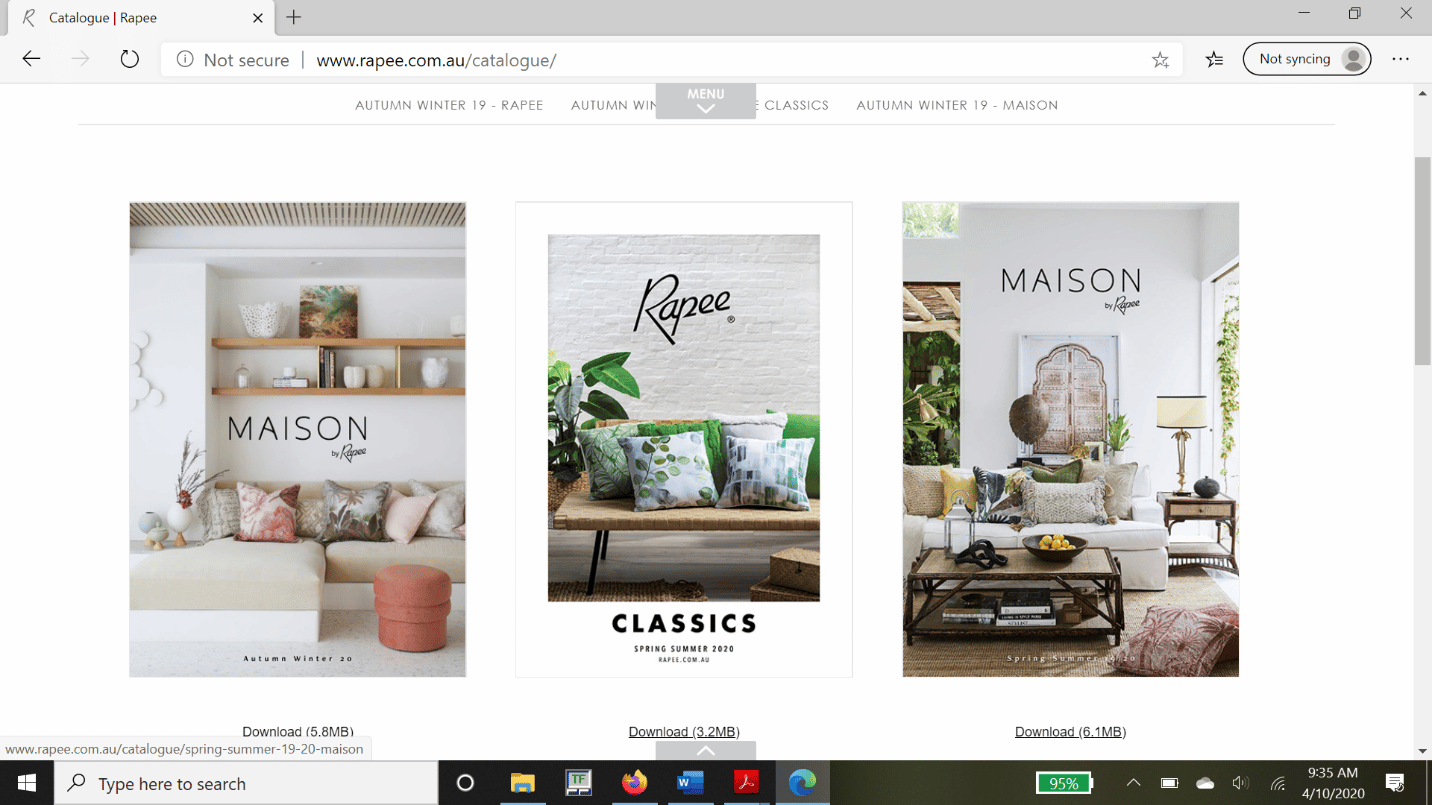 Fabric seller Rapee let’s you download a catalog in only 3 clicks, including the click on the menu.