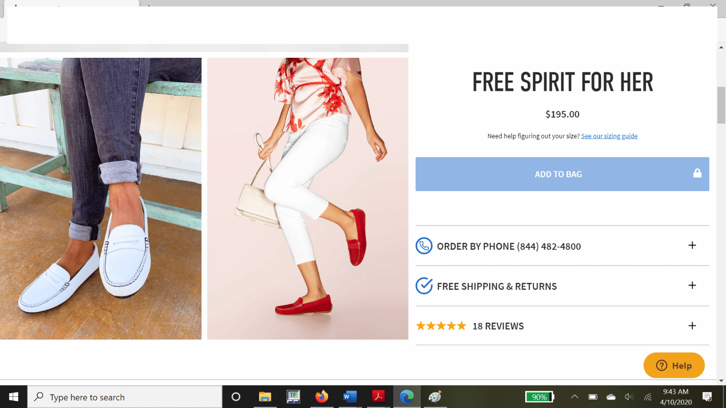 Everything you need to know about the shoes and purchasing shoes from Samuel Hubbard is on one page. There’s a sizing chart, shipping and returns policy, reviews, and a phone number or a chatbox for questions or more information..