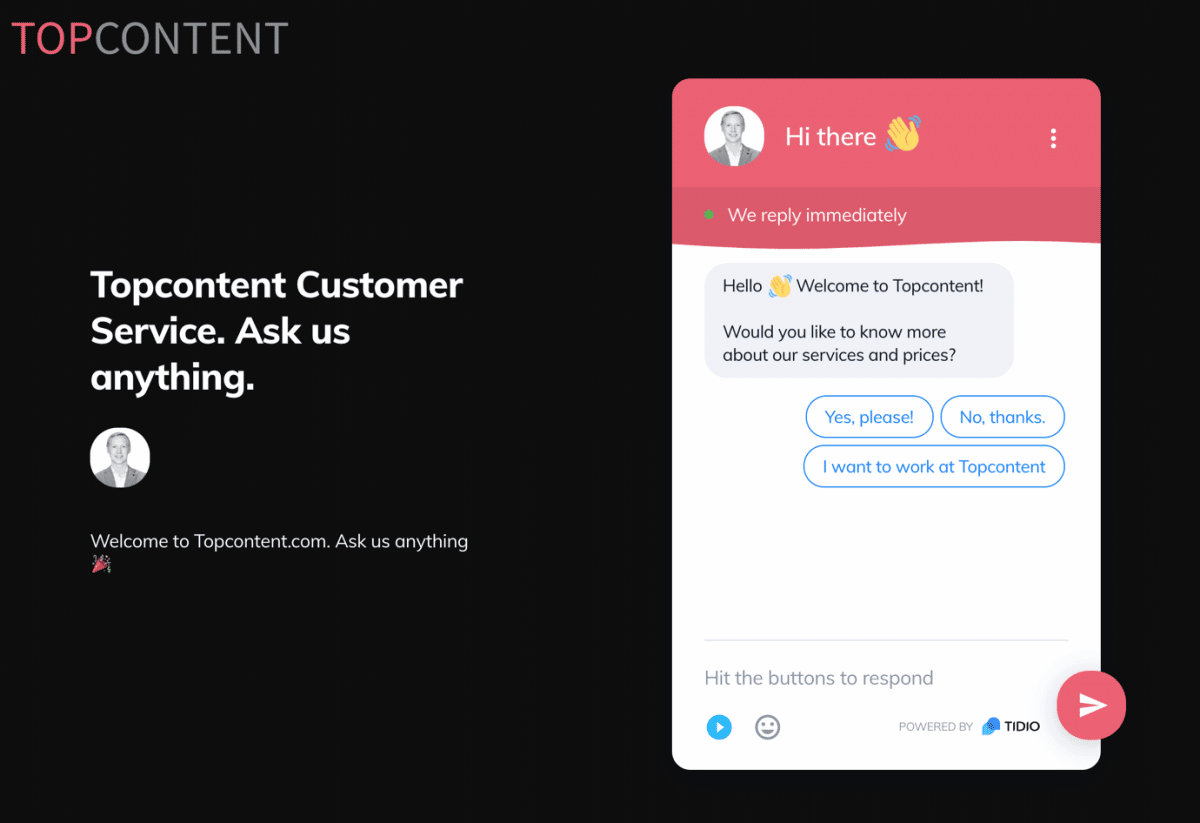 Chatbots can also help after the sale. A chatbot on the product support page helps customers get the help they need as easily as possible.