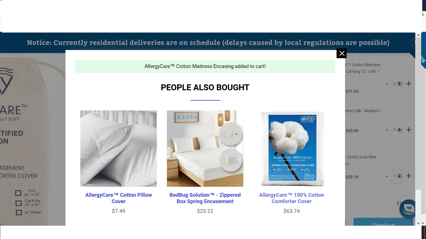 Existing customers should see a storefront that displays personalized negotiated prices, terms, and products.. Personalization makes them feel positive about their customer experience and provides the opportunity to upsell and cross sell for increased profit. A hospitality buyer that purchases cotton mattress covers might see this upsell promotion: