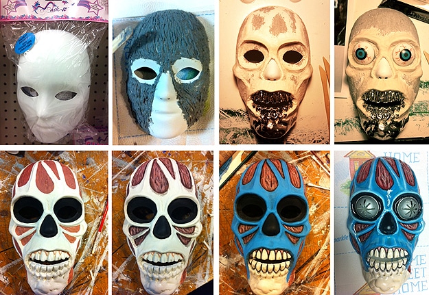 Artist Kiersten Essenpreis and her friend figured out a way to make some super cool They Live alien masks, and of course, I had to share them with you. The first picture below shows the finished masks, and as you can see, they are fabulous. The second picture shows a pictorial step-by-step for how they made them. There is also a video below showing a 30 second time-lapse of how they put it all together.