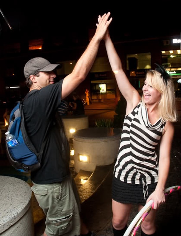 This hilarious little video below will give you some great pointers regarding High Five etiquette; however, if you are a High Five newbie, I recommend learning it from a stationary position. Trying to High Five while walking, running or biking is an advanced High Five technique. Since we are becoming an ever-increasing High Five society, it’s important to learn how to do it well. If you don’t, not only will you look like a dork, but you can also get hurt (really!). Terry Harper, who used to play for the Atlanta Braves back in the 80s, injured his shoulder after a High Five gone miserably wrong.