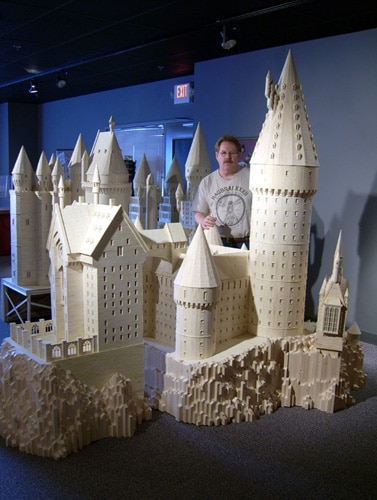 The matchstick pioneer and builder has created the most awesome replica of the Hogwarts School. Looking at it in these images doesn’t even come close to doing it justice. I surely wouldn’t mind standing next to that thing to really see the details on it. It took Patrick three years and 15 gallons of wood glue to put it all together. Talk about true dedication!