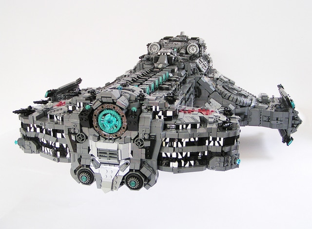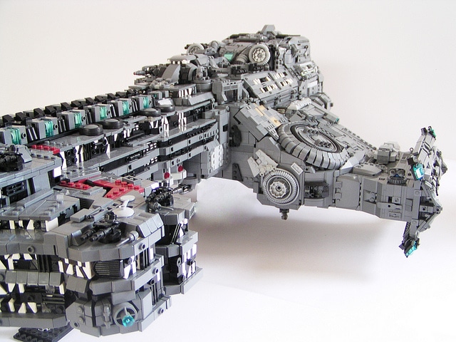 Take this Starcraft 2 Hyperion Battlecruiser for example. It’s a fairly detailed craft in the Starcraft 2 game that with the skills of a 3D modeler has been brought to life. However, converting it into a Lego build is something out of the ordinary. Sven Junga, the builder of this awesome spacecraft, has spared no blocks putting this together. It might be hard to appreciate the scale this thing prides itself on.