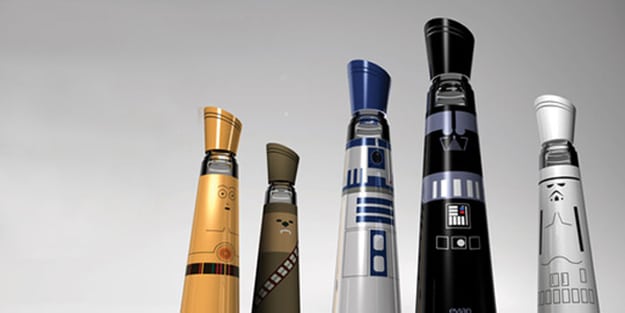 If you are a Star Wars fan, you are going to love these Evian water bottles. They give you a double whammy to satisfy your Star Wars addiction and your thirst. Not only are the bottles all shaped like lightsabers, each one is designed to be a different character. The set comes with a 5 bottles, including a C-3PO, a Chewbacca, an R2-D2, a Darth Vader and a Stormtrooper.