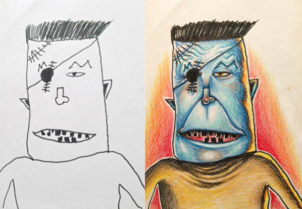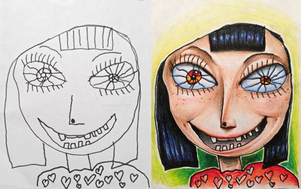 I think most people have saved some drawings or doodles from when they were young. You know those pictures that you were enormously proud of, and your parents a least acted like you were the most talented kid in the world. Those were the good old days. Nowadays kids create software that just blows your mind. Well, for Reddit user Tatsputin’s kids it’s a whole different story. Their father actually turns their doodles into awesome pieces of beautiful art.