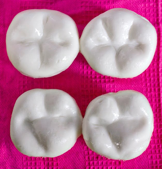 To make these even more adorable, she even made the anatomy on these molars real. Yup, that’s what a real tooth actually looks like (in case you haven’t seen yours in a mirror lately). You can click over to Tooth Cupcakes to get the full tutorial, or you can get the gist of it from the little numbered image below.