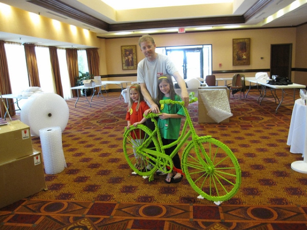 Now it seems people are no longer impressed by the Lego builds of cars, and instead, they resort to more… muscle generated transportation. The guys behind Brickapolis know what they are doing, and they put together a genius full size Lego bike in an all lovely green color (hmm… not really lovely, but green). The bike is big enough for any grown person to take a ride on it; however, I am still fighting the fact that it is a working prototype.