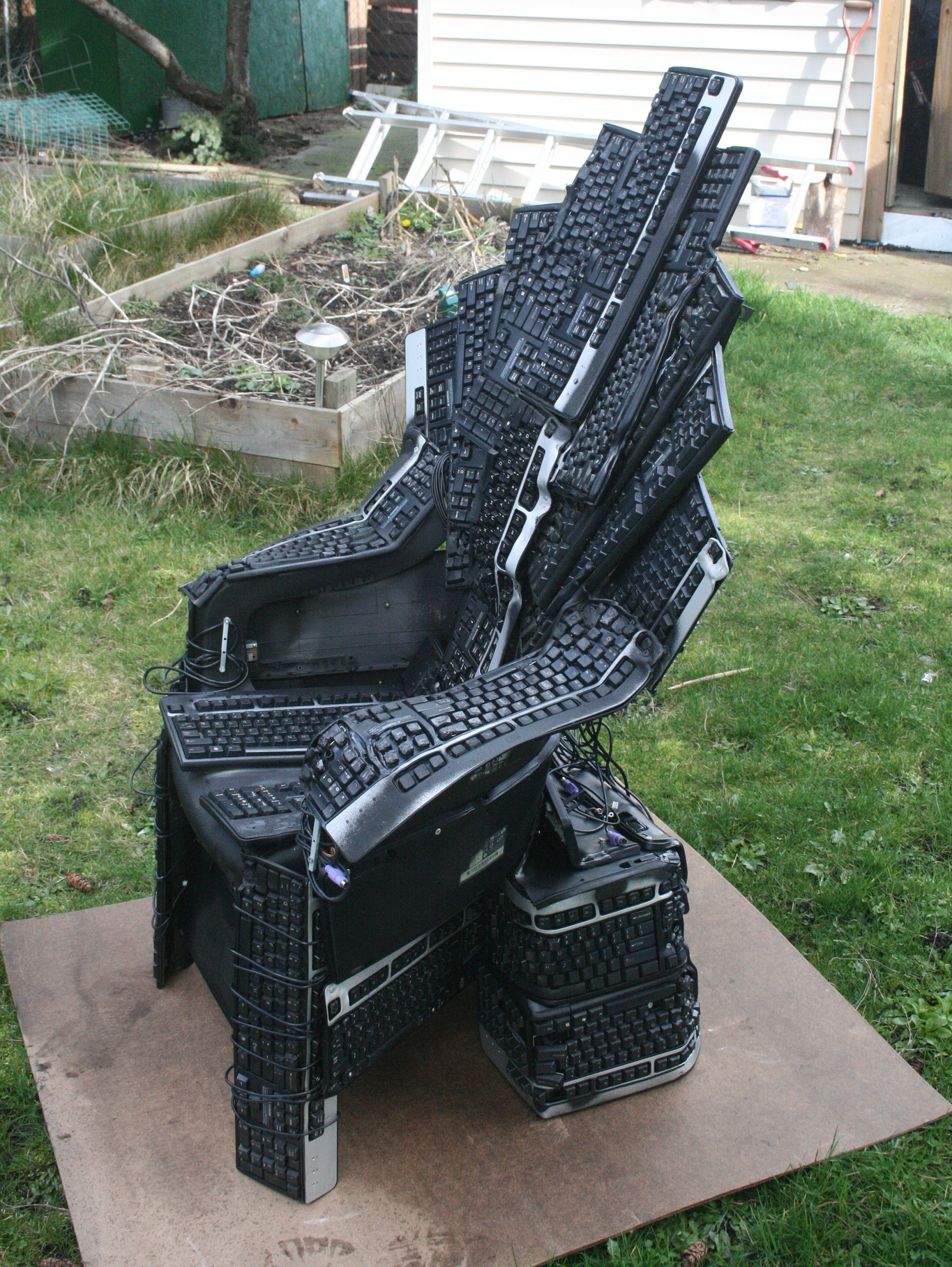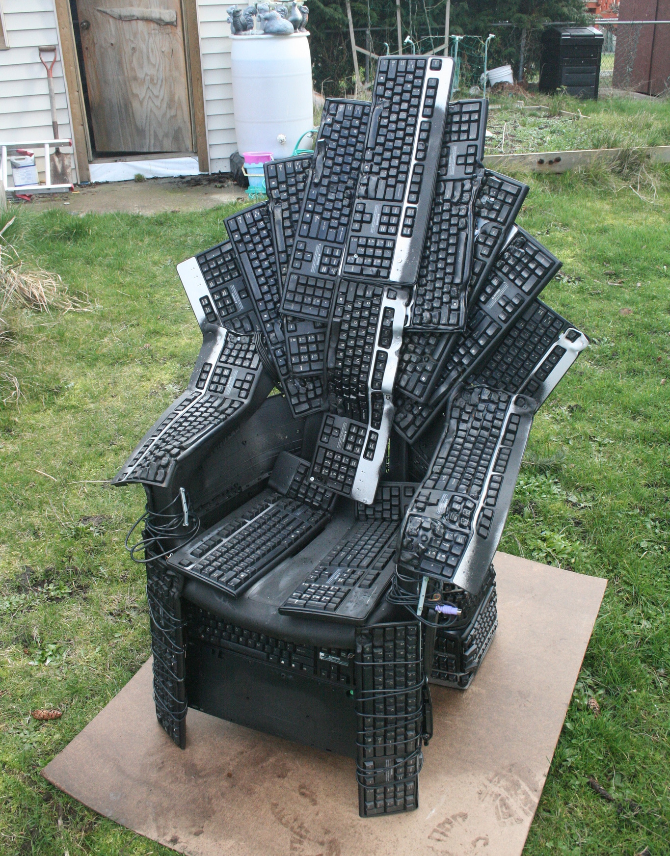 This chair symbolizes suffering. It looks all warped and uncomfortable, and Mike specifically scorched all the ESC keys to represent how impossible it can be to escape suffering and blackness. I’ve never seen the show, but for the fans, I’m sure this somehow makes a lot of sense. Regardless of that, this is not only a great way to reuse old computer keyboards, but for some odd reason, I’d like to sit on it.