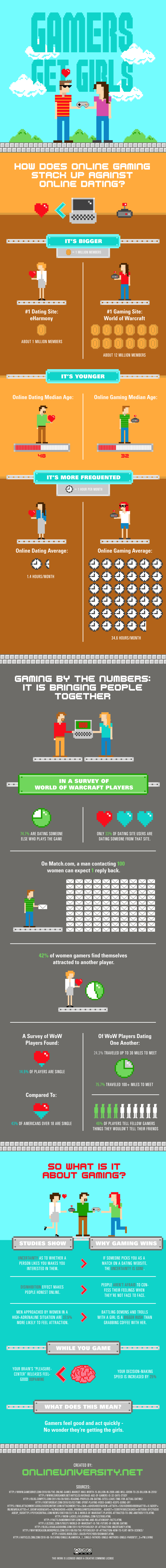 So, to all you guys who are sending dozens of messages to girls on sites like Match.com (and not getting any response), just remember, the gamer guys are quietly behind the scenes getting all the girls! tee hee [Infographic created by Online University]
