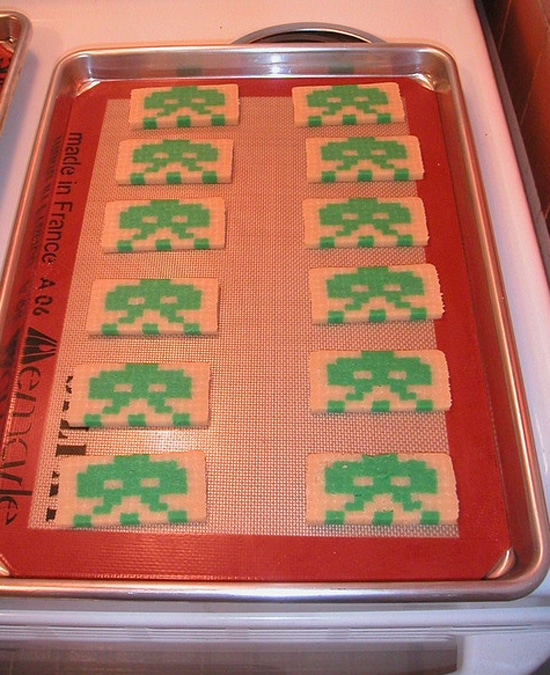 The only thing I’m unsure about is how to layer the colors of dough to make the correct pixelated design. I read that some people use an excel spreadsheet to figure this out. I’ll let you know if I find an easier way. The pictures below are from SeattleJonman‘s flickr photostream. I love the smell of cookies when it fills the house. I wish ya’ll could come over to have some when they’re finished baking!