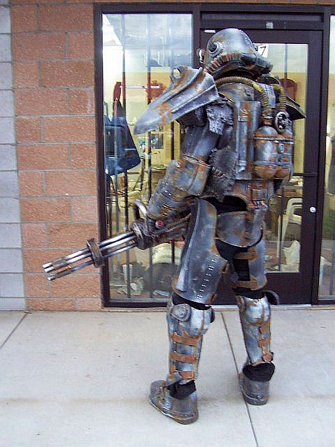 The creator of this amazing and kick ass Fallout 3 Power Armor Cosplay Suit remains unknown, but the fact that it looks to weigh in at about 300 pounds is beyond cred worthy. There is no telling what material was used to mimic the heavy metal (that for sure is bullet proof) but it sure looks truly awesome. I can imagine; however, that it’s some kind of plastic or stronger foam that’s easy enough to mold and cast to get the grittiness of the suit.