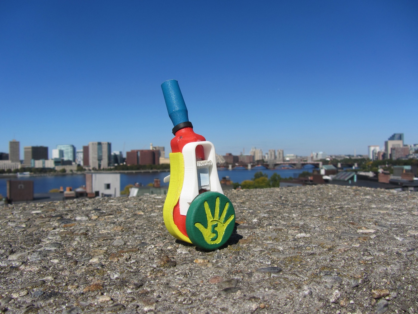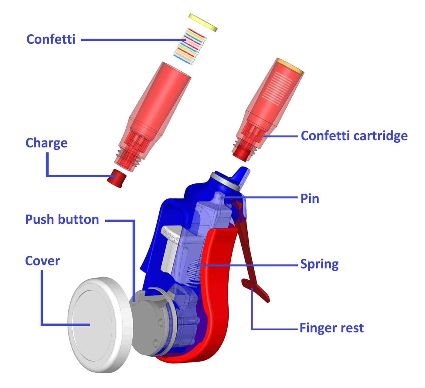 It is actually a little reloadable, reusable confetti cartridge. It has a push button on it, and when you high five, you’ll press the button with your hands and release a little burst of confetti to complement the mood. Then, you just reload the dispenser with more confetti for the next high five extravaganza.