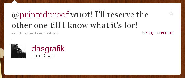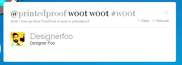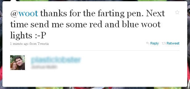 Huh? You got a “Twitter”, or a “woot” for your Twitter? I’m confused…
