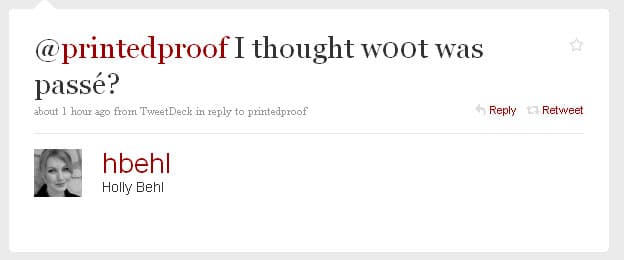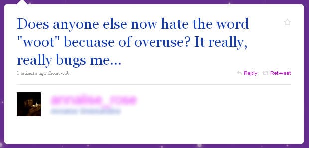 Passé? Touché Holly. I thought so too until I did a search for “w00t” on twitter! Holy woots Batman!