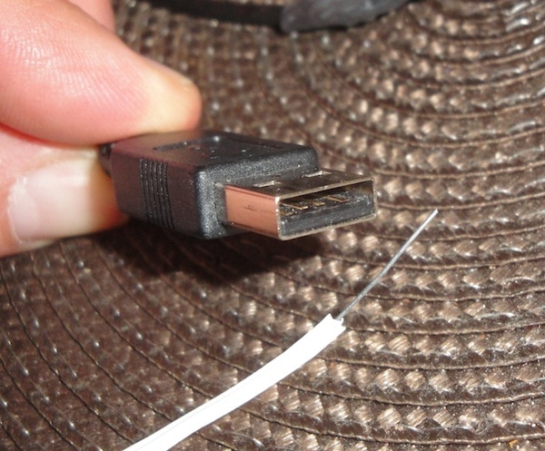 This was relatively simple to do, but I cracked it open first to ensure that I wasn’t trekking down a fruitless path. A hammer and a paint chisel later, I removed the power connector’s lid and was able to examine the internal circuitry. I found a yellow wire connected to the positive 5 volt source and an unlabeled black wire which logic dictates would be the negative 5 volt connection. This is fortunate because USB connections are based on 5VDC, so this cut my crafting time and parts list in half. In my book, the less soldering the better. Not that I mind soldering at all since I happen to be quite good at it, however; it’s just strenuous and somewhat time consuming.