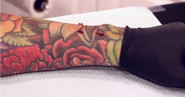 Nah, in all seriousness, I think Dave Hurban’s idea is pretty cool. That “I’m magnetic” look is kind of sexy (not). Dave is from Dynasty Tattoo in Jersey. His invention is called the iDermal, and it will alleviate the need for an iPod Nano wrist strap forever. You gotta admit, this is pretty darn creative. Apparently the magnets are small enough so they won’t set off a metal detector, and they won’t hurt your laptop when your wrist gets close to it. The magnets are also removable. They almost seem as simple as a piercing, but I’m sure there is more to it than that.