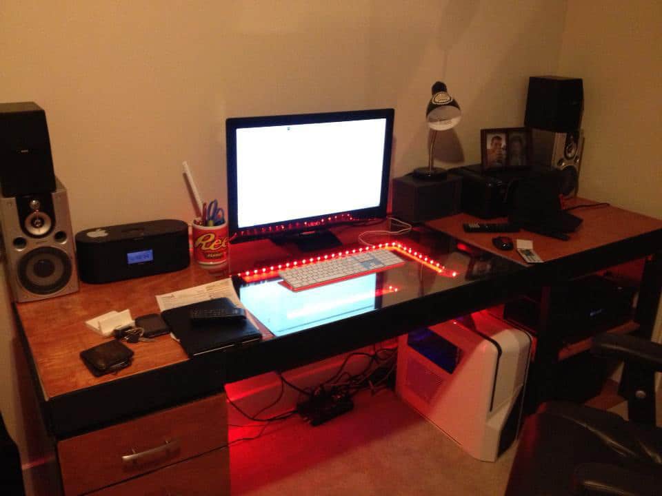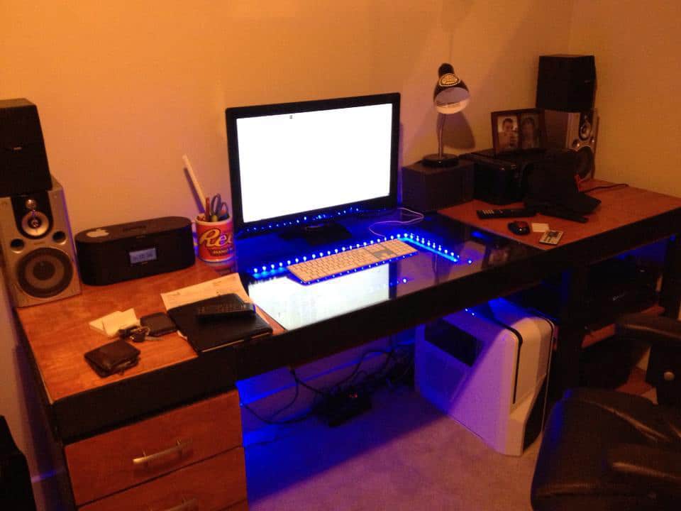 Beware if you fall asleep at your keyboard though. If you wake up looking down that tunnel, you might just wish you had stayed asleep. This desk design was created by Reddit user Jacks_RagingHormones. Unfortunately there isn’t a tutorial for this one, but you can find instructions for how to make an infinity mirror on YouTube. Brilliant!