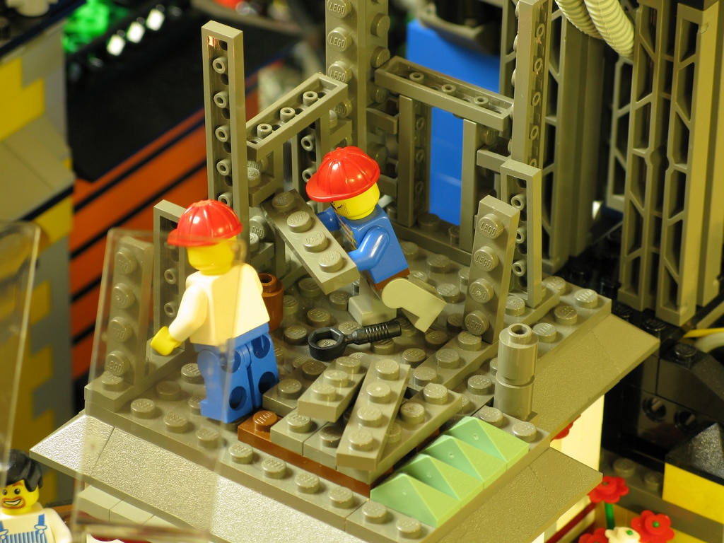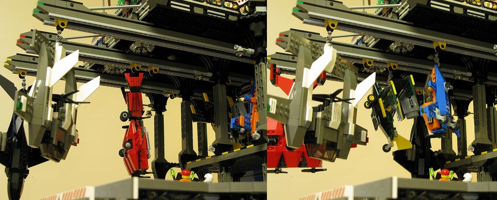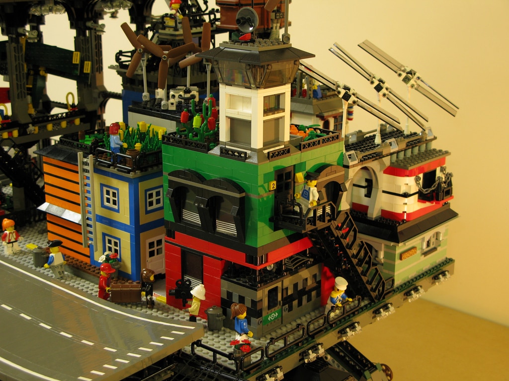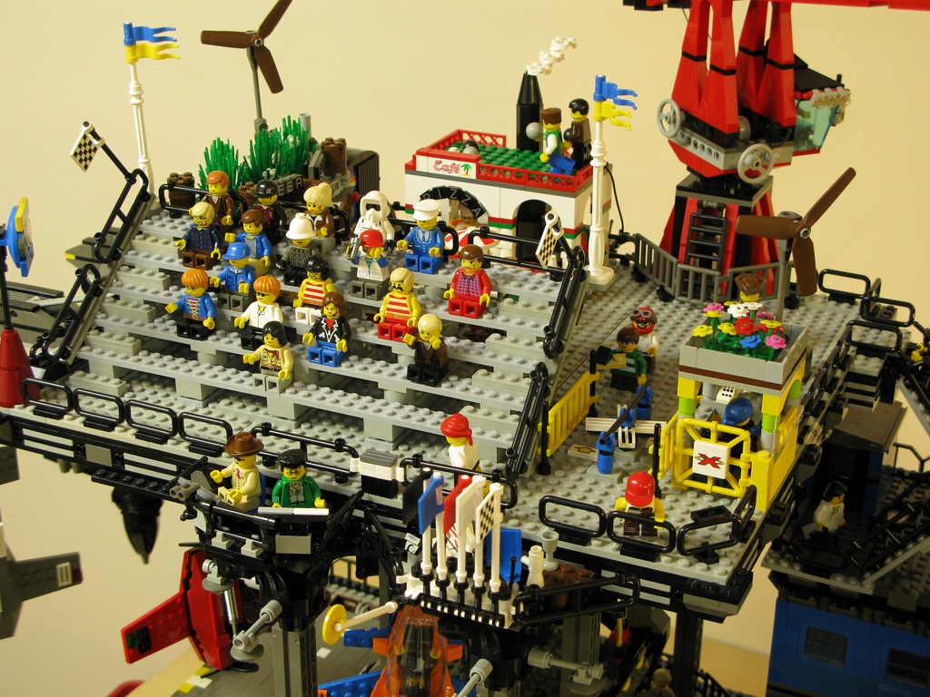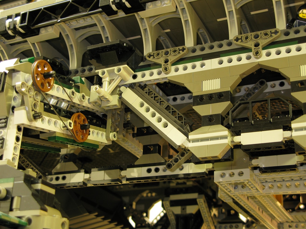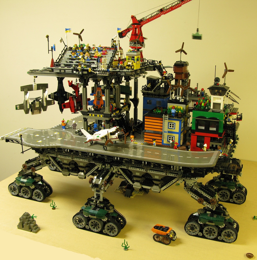 The LEGO fanatic and builder Dave DeGobbi didn’t exactly start out small with this build. If you can find anything missing on this, I’d be happy to hear about it because when looking at the inventory list of things that are incorporated on this build… well, let’s just say that the list could go on forever. If you look at the amazing high resolution images, you will be able to find: Living areas, elevators, gardens, a hanger, sliding hooks, a runway, cranes, storage rooms, food courts, solar panels, construction areas, crawlers, a grandstand… as I said, I could go on forever.