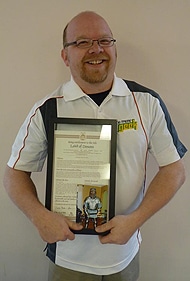 6. Greg proudly owns his own complete suit of 15th century museum quality replica armor. He likes to wear it on Halloween and while lounging around the house. It weighs 104 lbs.