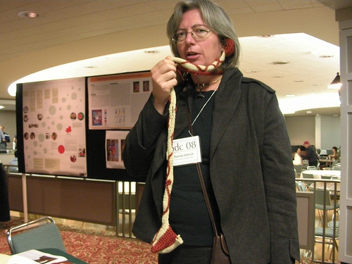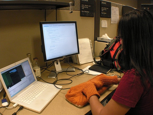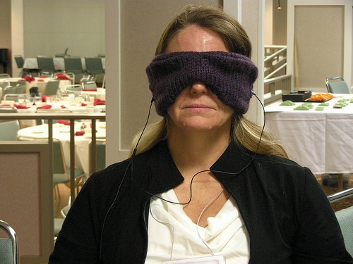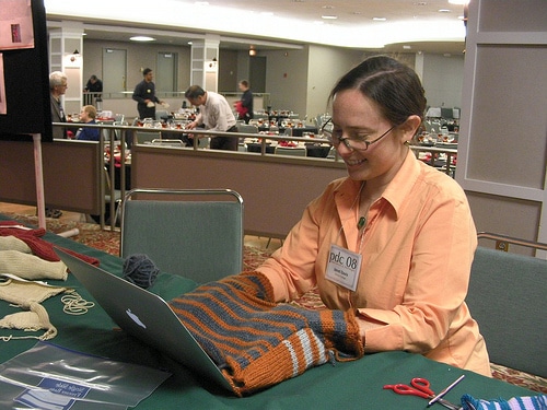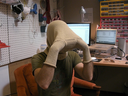 Before you look at these photos and discount these designs as bonkers, think about what they were created to do. These knitted designs were made to help us interface with our technology better, and when you think of it from that perspective; you might consider wearing one of these wacky contraptions. According to http://sternlab.org, the purpose of these is to give you “privacy, warmth, and concentration in public spaces.”