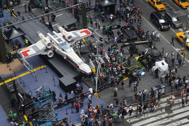 This life-size X-Wing Starfighter was constructed to promote “The Yoda Chronicles,” which is a television show coming to Cartoon Network this week. It’s at Times Square now, but it will soon be moved to LEGOLAND in California. Children can climb into this massive build and have their picture taken. There’s even buttons with sound effects and some R2-D2 blips and beeps.