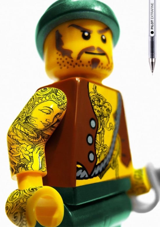 LEGO has now gone badass! Why you might ask? Well, it’s not really LEGO’s decision to reach out to one of today’s most controversial body art forms, tattoos. In an attempt to load up on customers PILOT (maker of fine pens) decided to hire an advertising agency to get themselves to be the talk of the town (or, the world really, and it seems to be working, right?).