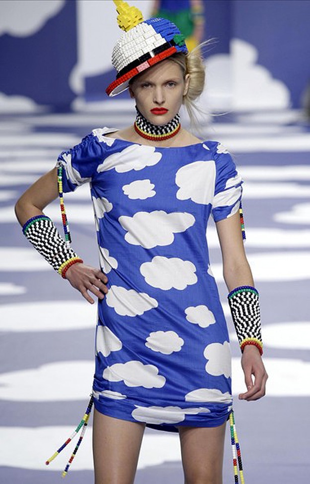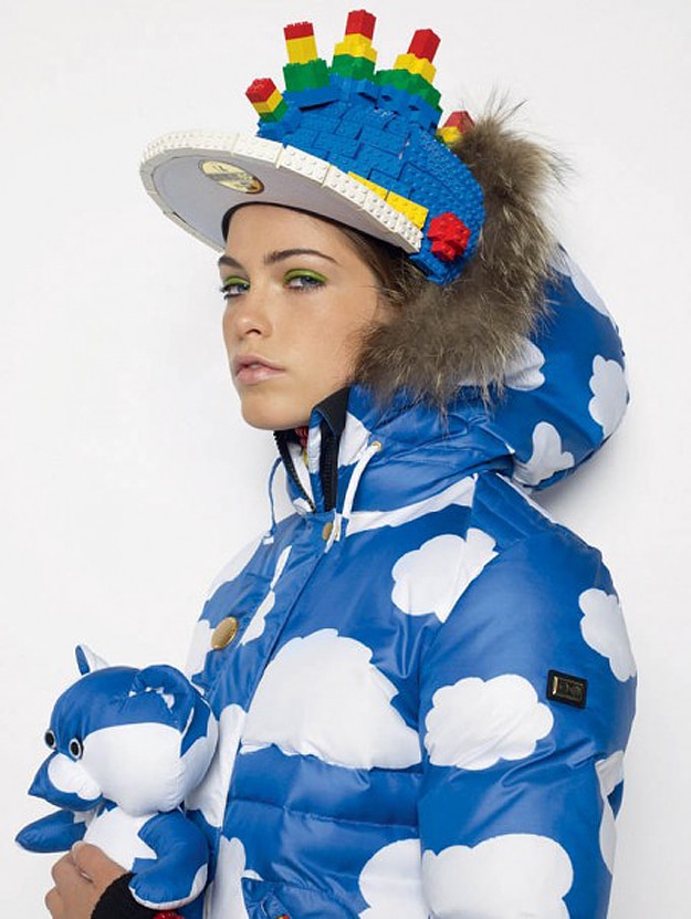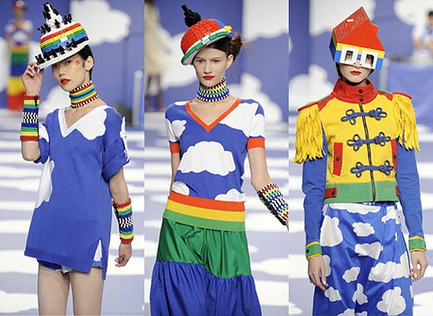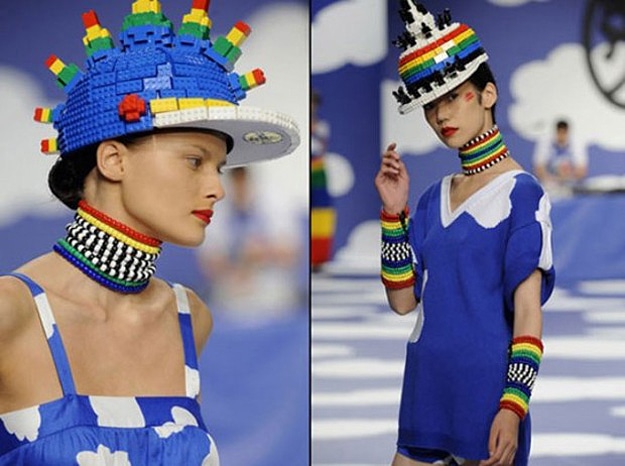 These are from French designer Jean-Charles de Castelbajac’s Spring/Summer 2009 collection. I can truly appreciate that he has brought Lego into the world of high fashion. And, as strange as this may sound, to me, these models actually look like some of the little Lego figurines we had as a child. These models really know how to work the Lego style! Not only are these Lego inspired designs, but they also sport the colors and styles from the 80s. You’ll even see a Mohawk created out of Lego on one of the hats below. One thing is for sure, if you were to wear something like this to a party, you’d be the center of attention all night long!