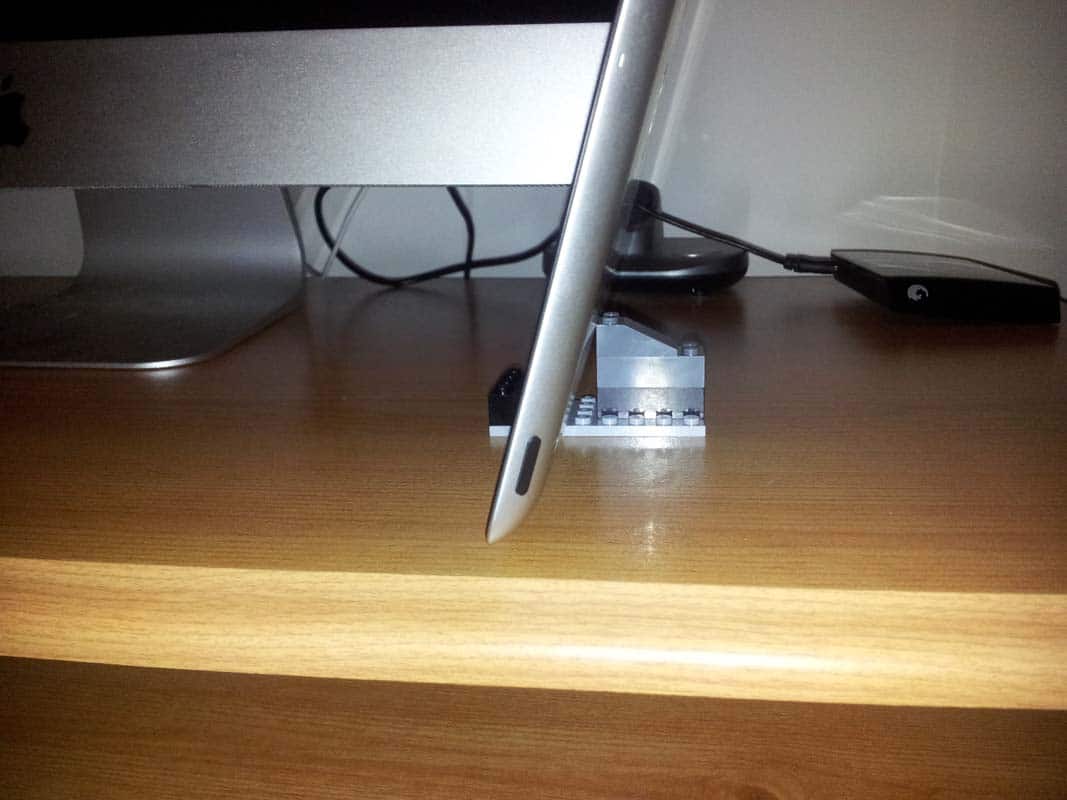 Jason Devine challenged his kids (ages 11 and 9) to create a LEGO iPad stand with as few LEGO bricks as possible. They actually created two iPad stands, and they are brilliant. They are apparently strong and sturdy, and working well. The first one they made was built using only 5 LEGO bricks. You can see it in the first set of photos below. The second one, also pictured below, is a tad more elaborate and was built using a few more bricks. I really like both of these super simple iPad stands, but I think the second one is a little more my style.