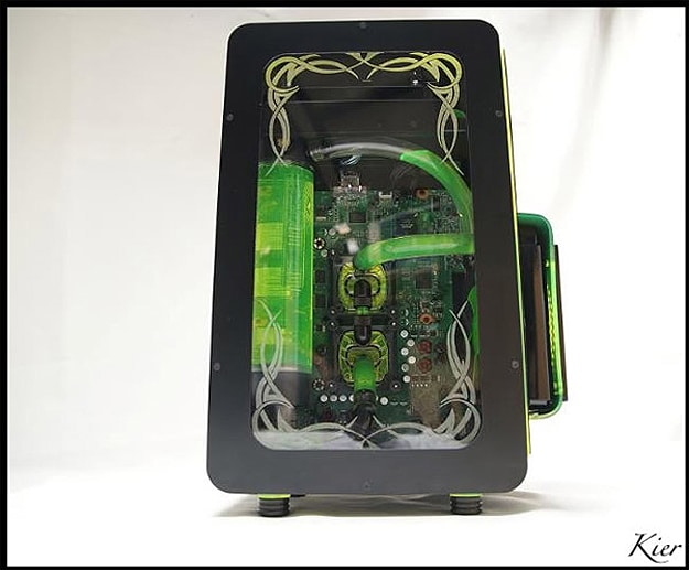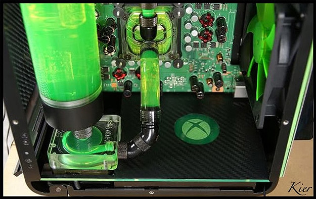 This is an Xbox 360 mod created by using a modified Lian Li PC-XBO1 case with a bunch of extras. If you’re a gamer, you probably know that this case is discontinued, so first, Kier had to find one. He wanted this case because of its large size since he knew he wanted to add an XBOX PRO Dual 40 Watercooling Kit to keep it all running at maximum performance. Everything about this mod is perfect down to the very last detail. Kier even etched the acrylic with a diamond point tip.