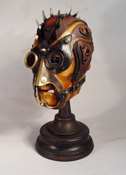 This mohawk leather mask isn’t just something that you’d put up in a glass display and wait for people to cheerfully comment upon it. Nope, it is actually a fully working and wearable piece that you could use in any cosplay reenactment as you see fit. That’s what I like about steampunk, the fact that even though the items in question have been beautified through the steampunk process, they almost always remain working. That’s why having a steampunked item is so flippin uber cool. You totally get something to show off when you are at a cafe or a restaurant. Just turning the steampunked cell phone on will probably get a ton of people chattering about it. If anything, it’s a great conversation starter.