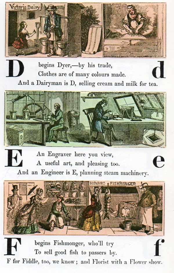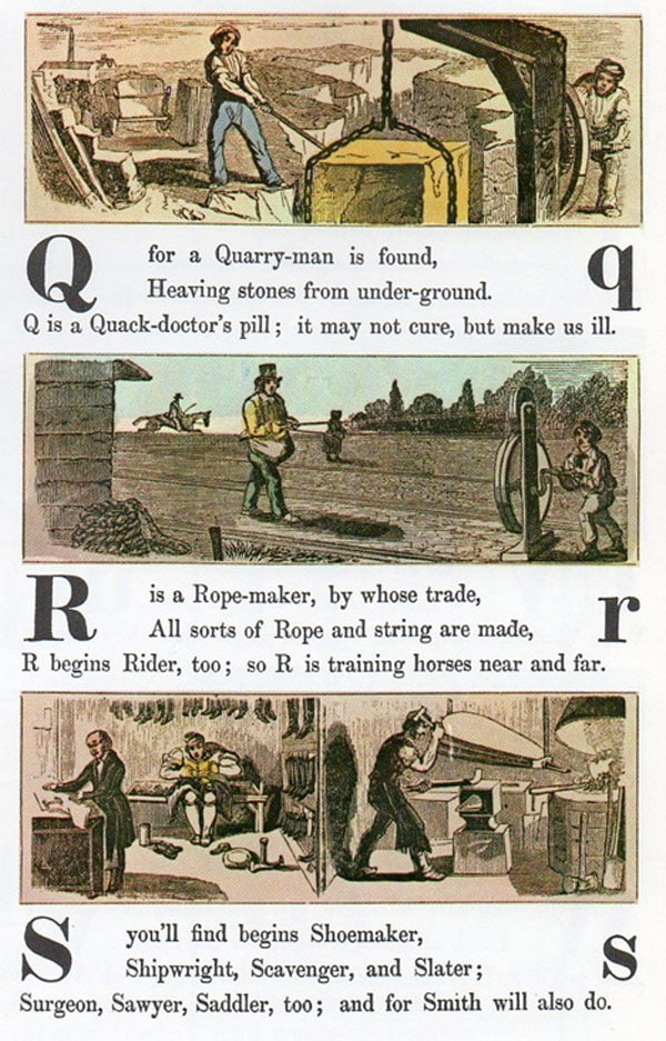 This alphabet takes the word retro to a whole new level. If you were alive in 1850, what kind of job do you think you would have? I think I would have been a wax-chandler, a fishmonger or a wharfinger. Nah… I’m not even sure what those are, but apparently they were popular 162 years ago.