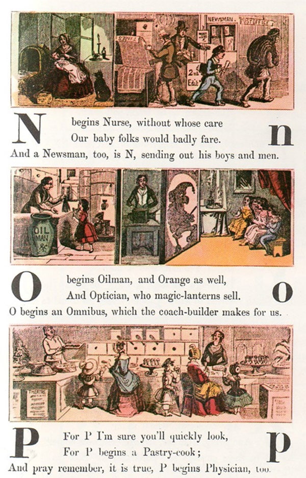 You may notice that there were no professions during that time that started with the letter X. According to Ptak Science Books, “There were no “X” professions by name, that would take at least until 1895 and Wilhelm Roentgen, unless you include xylophone players (or makers).” When I checked Wikipedia to see what Wilhelm Roentgen was famous for, I found out that he is the one who stumbled across the discovery of the X-ray. Another interesting tidbit is that since books back then were typically very small, the original of this alphabet was only 5 inches tall. It had three letters on each page. I wish I could have seen that! History can be so much fun. I wonder what a hawker is.