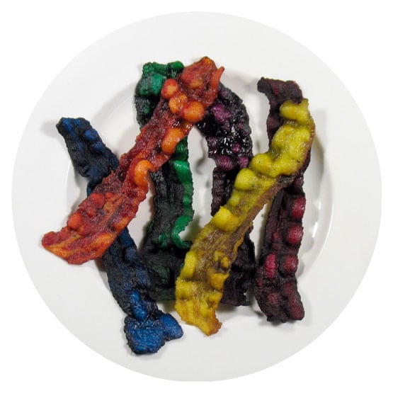 How about red, blue, green, yellow and purple bacon strips? If you were served these bacon strips at a restaurant, would you wrinkle your forehead and ask the waiter what the hell was wrong with them? Or, would you silently and politely eat them only to find that they were just as tasty and fresh as your usual bacon strips?