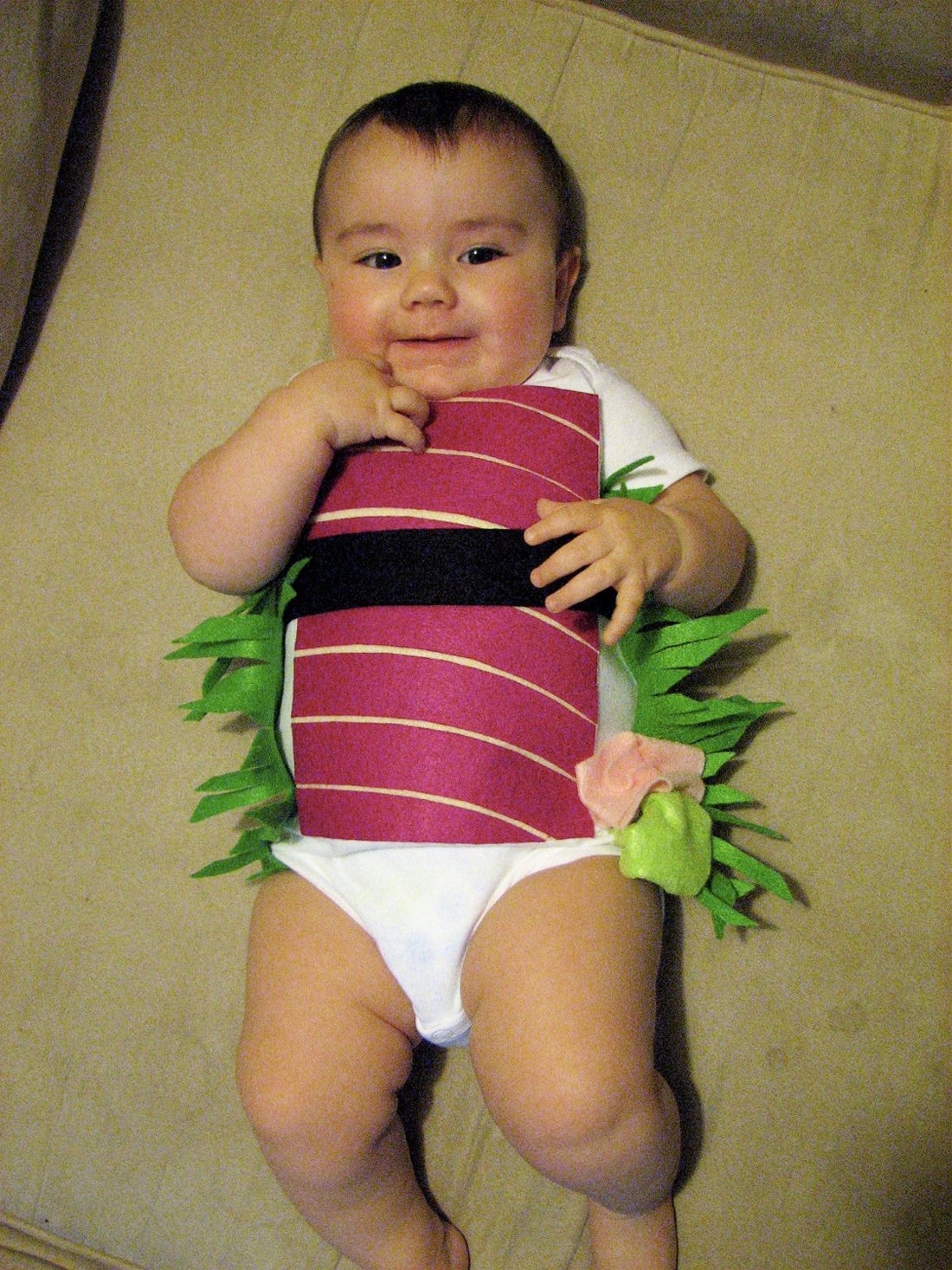 This brilliant geek baby costume was created by Etsy user TheWishingElephant who you may have heard of before. Her baby sushi costume, which you can also see below, was featured on the Martha Stewart Show last fall.