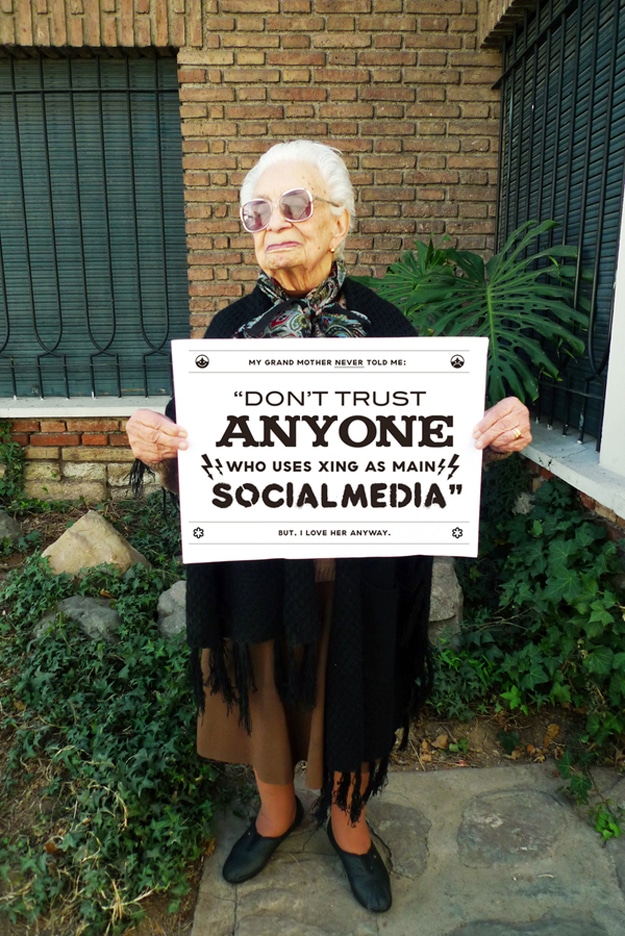 Artist Chacho Puebla from Spain put together this project called Grandmother Tips. They are tips he wishes his grandmother had given him, but she didn’t. The person in the photographs is his great-aunt. The photographer was his sister, Lula. Aww… Chacho, your aunt looks so sweet. I wonder if she has a Twitter account. I agree with all of this advice! I’m going to forward this to anyone who asks me for social media tips.
