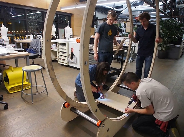 I probably sit way more than I should when I am working. As a matter of fact, I am sitting right now. It has been proven through studies that sitting down is slowly killing us. Our human bodies are simply not meant to be sitting. Most people continue to sit down when they work despite the fact that we now have standing desks that will allow you to avoid sitting as much at work. For two guys, Robb Godshaw and Will Doenlen, enough was enough, and they went on an endeavor that would end in them building the ultimate human hamster wheel standing desk.