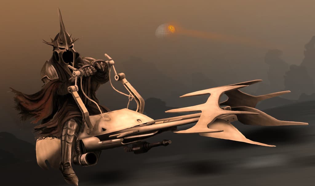 I don’t think I would ever want to see a serious movie with these two “worlds” all bundled into one, but a clip wouldn’t be too bad I think. It would be chaos if they were ever to be ruined by the unmixable flavors of them both. Each movie franchise has its own aura, and I guess we all would like it to stay that way. However, these images certainly start a process in your brain which is hard to stop. These three images represent the very epic journey of some of the most memorable characters of these two movies series. I am sitting here hoping that Benjamin will upload more of these awesome images which I would truly have no problem in buying in bulk.