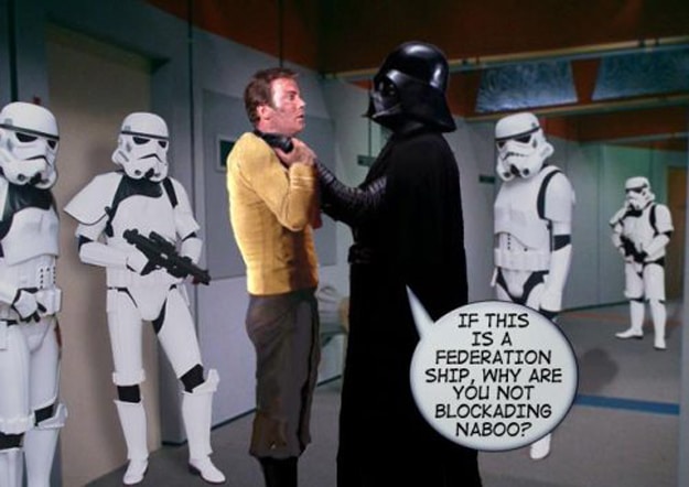 For this infographic called Star Wars vs. Star Trek, Bestessays.com did some serious research in an effort to determine which ship was better. The thing that annoys me though is that after doing all this, they didn’t leave their final opinion regarding the debate. Wtf? I suppose they are leaving it up to us to decide. So, which is it for you? My money is with Luke and the gang because 1) The Stormtroopers always miss when they shoot at them 2) They always win in the end. I put a few mashup photos below too. If you are a fan of both, they will put a big smile on your face for sure. Now I’m thinking about having my own Star Wars vs. Star Trek infographic created, and when I do, it will cover a lot more than just starships. Oh, that would be a LOT of fun!
