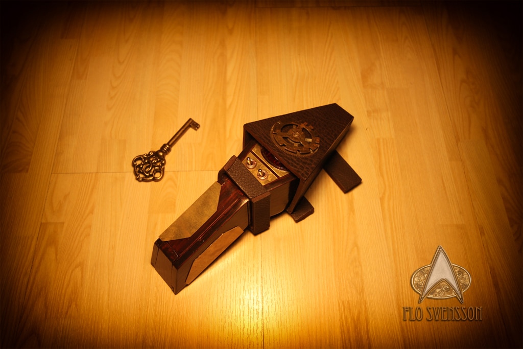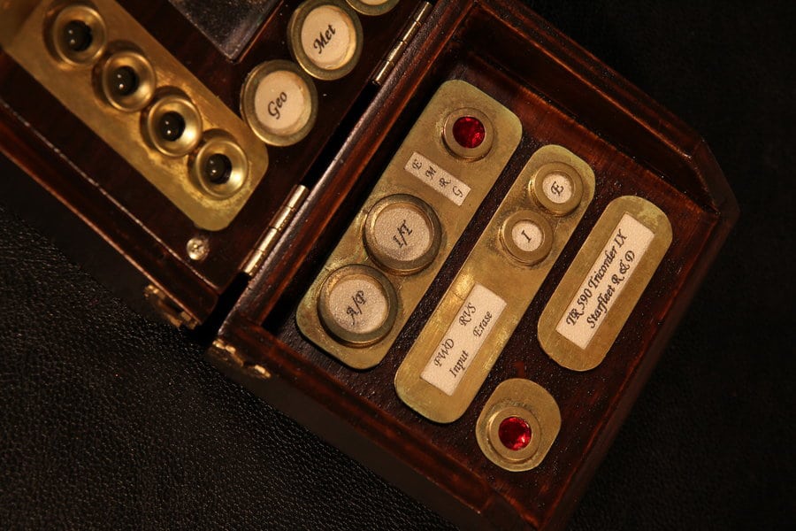 Now it makes sense to steampunk a few of the Starfleet uniforms so they match this Star Trek tricorder and phaser. Can you imagine if the whole uniform got the Steampunk treatment? I suppose if the crew takes a trip back in time to the 19th century, they might be able to use these to fit in with the locals.