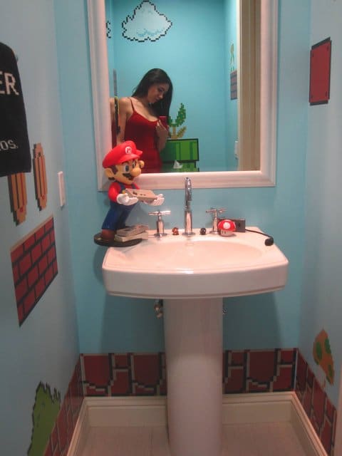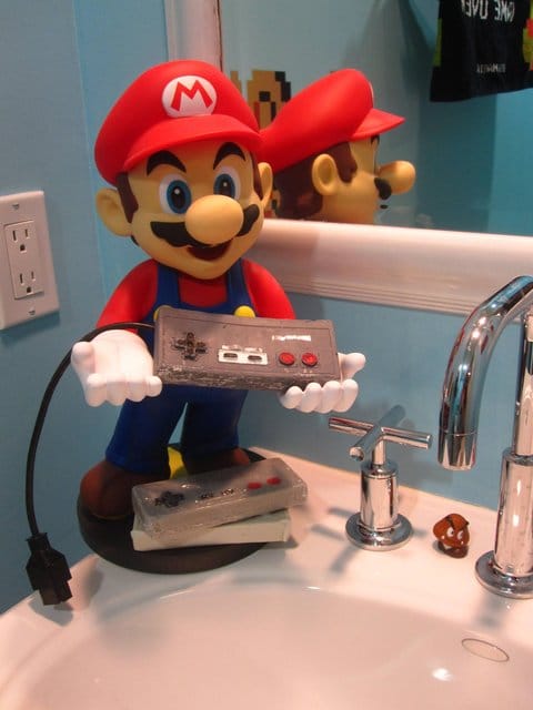 Some people read a magazine while they do their business, and others bust out their iPad and browse their way through their bathroom visits.  If you’re at this girl’s house, you are likely to just stare at the walls trying to figure out your next move to save the princess.  Well, if you’re dedicated enough to see it through, you will most likely stay in there for quite a while since there is no real way of completing your mission.  When you’re done, you can be sure to wash your hands of with one of the awesome soap Nintendo controllers that Mario offers you.  Hmm, just don’t forget to do the thing you went in there for… #JustSaying