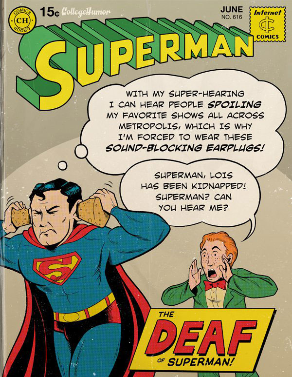 College Humor recently created five Superman funnies to illustrate what it would be like if Superman had to deal with modern day social media problems. You’ll get to see him grapple with Twitter addiction, some curious redditors, a fake Twitter account and even privacy issues pertaining to Google Earth. As always, College Humor gets it just right.